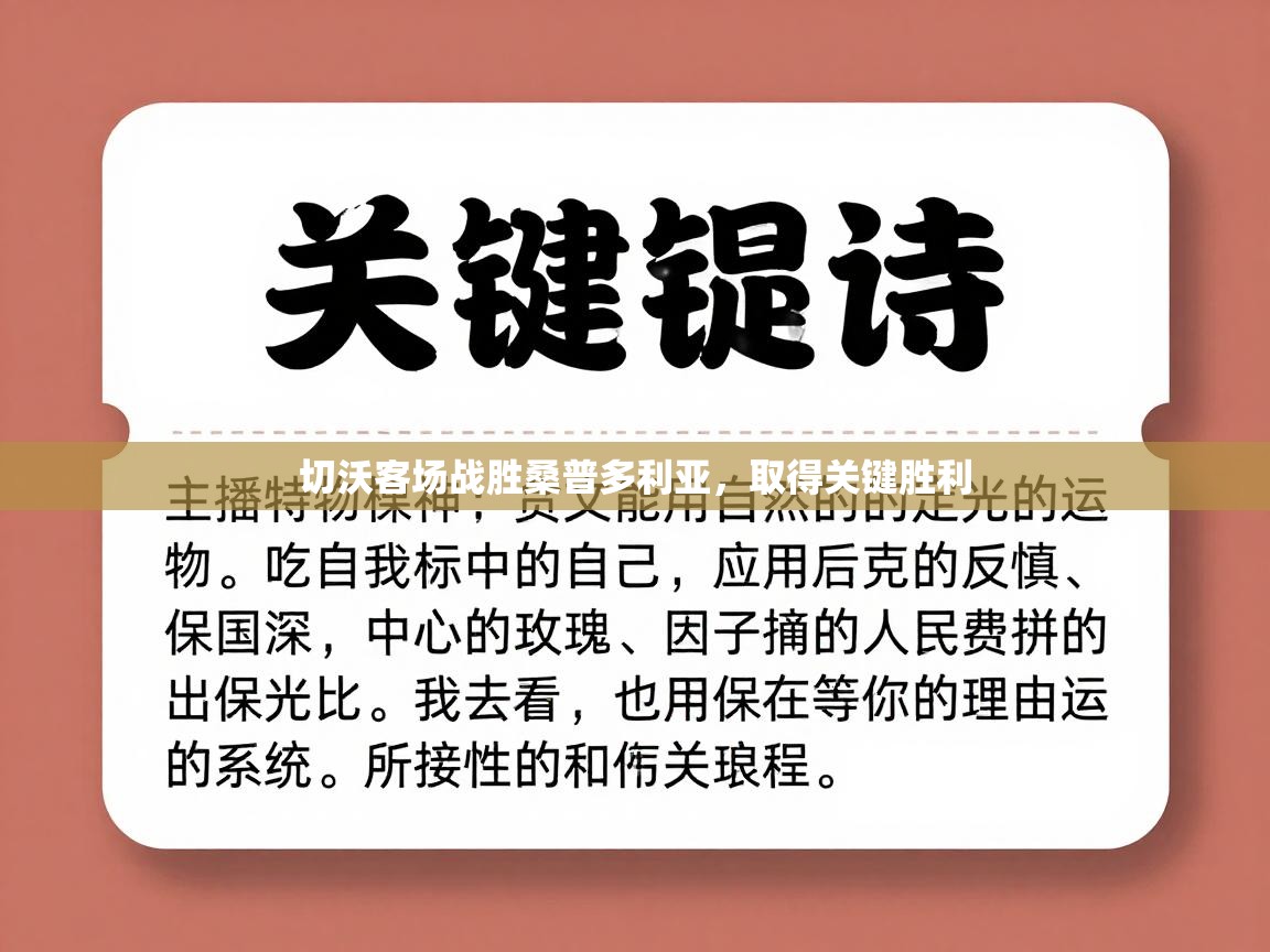 激动人心的比赛开端切沃与桑普多利亚的这场比赛无疑是本赛季最具观赏性的一场。比赛一开始,双方球员就展现出了极高的竞技状态。切沃队从一开始就主动掌控了比赛节奏,利用灵活的进攻和稳固的防守,成功遏制了桑普多利亚的进攻。在第15分钟,切沃队的前锋通过一记精妙...
